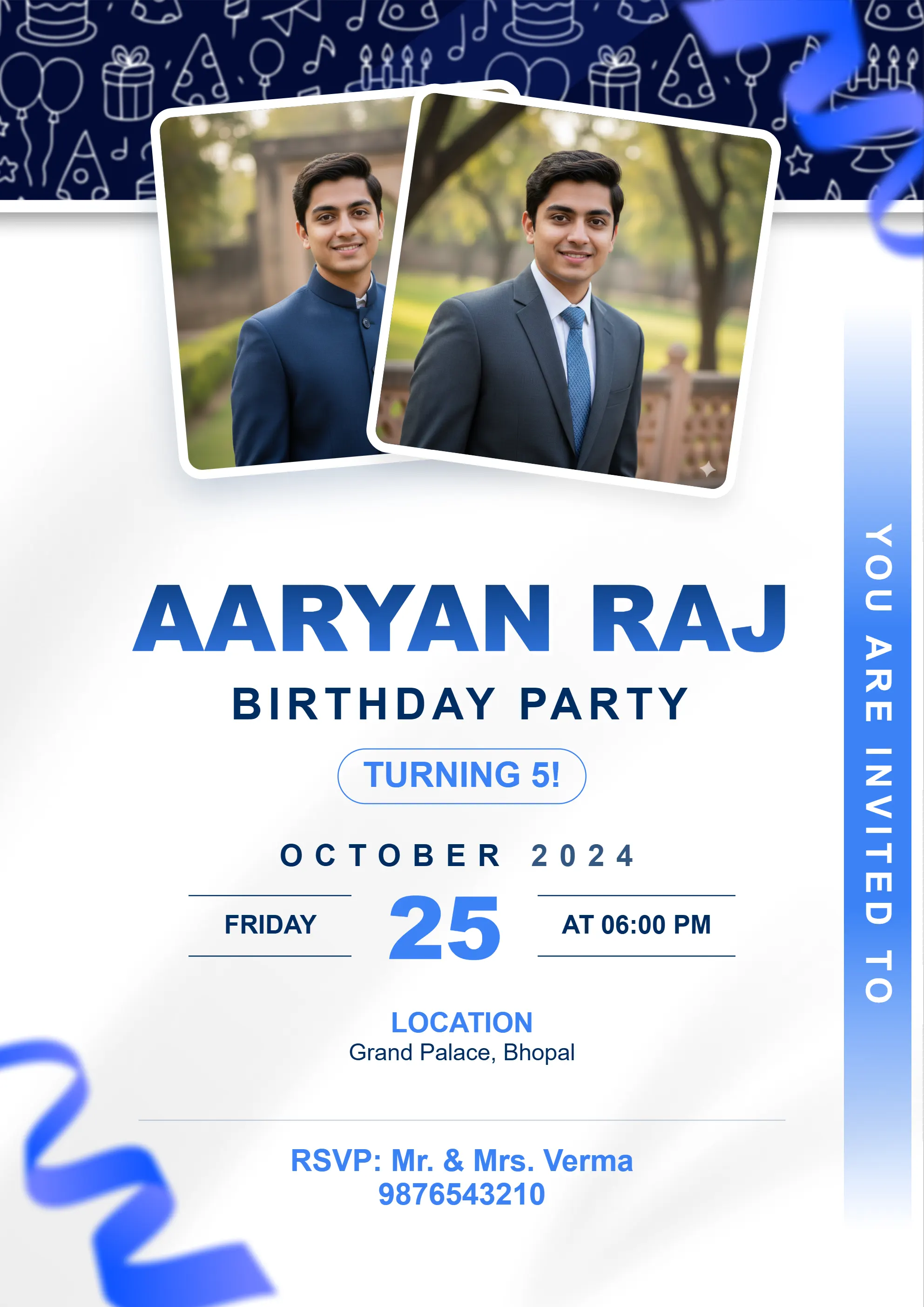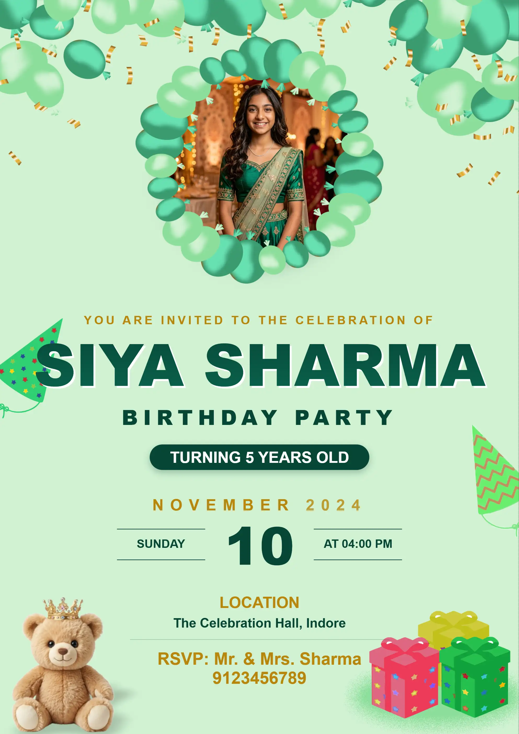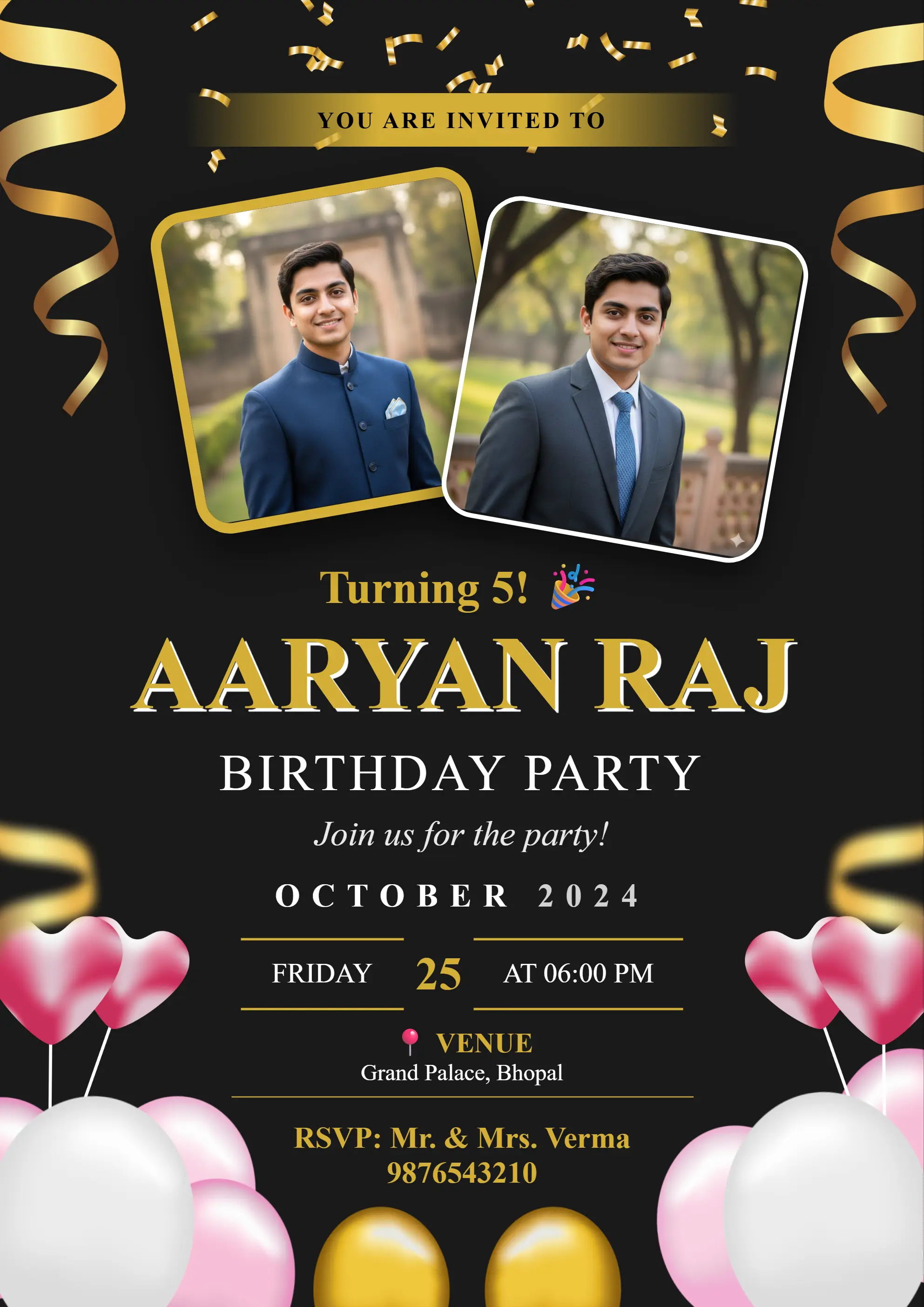 Our easy-to-use editor allows you to create professional birthday invitation cards in just minutes. Follow the guide below to understand what details you can customize.